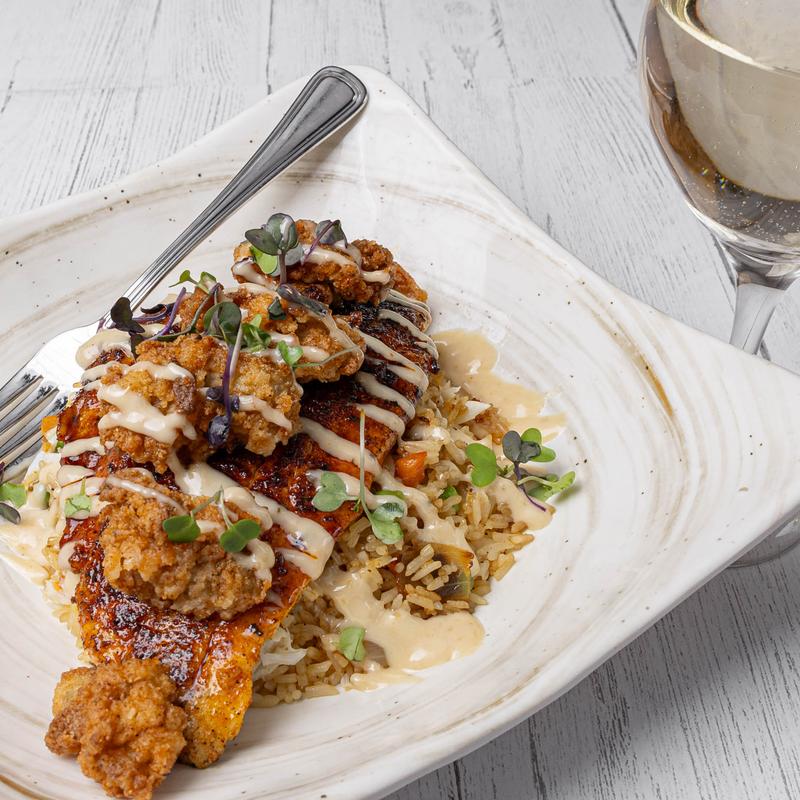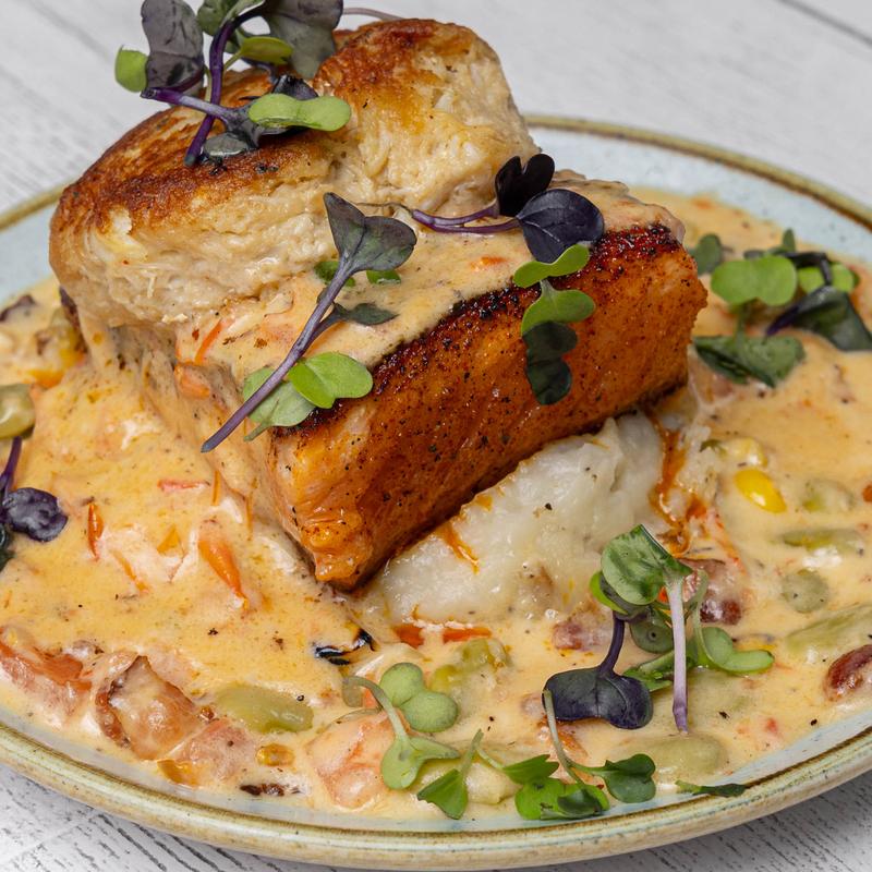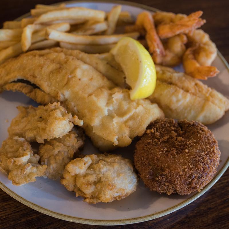 Love love love. The complimentary hush puppies with the sweet honey butter are to die for! The scenery by goat island is lovely as well, and a great walk after dinner. We all enjoyed our meal here while on vacation, no complaints. Our server was super friendly and the food was all delicious. The she crab and clam chowder were some of the best soups I've ever tasted! My husband ordered a salad with fried oysters, and I had a crab cake sandwich, yum.